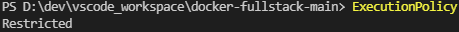 확인 방법은 터미널에 ExecutionPolicy를 입력했을 때 Restricted라고 나오면 설정을 변경해 주어야 한다.